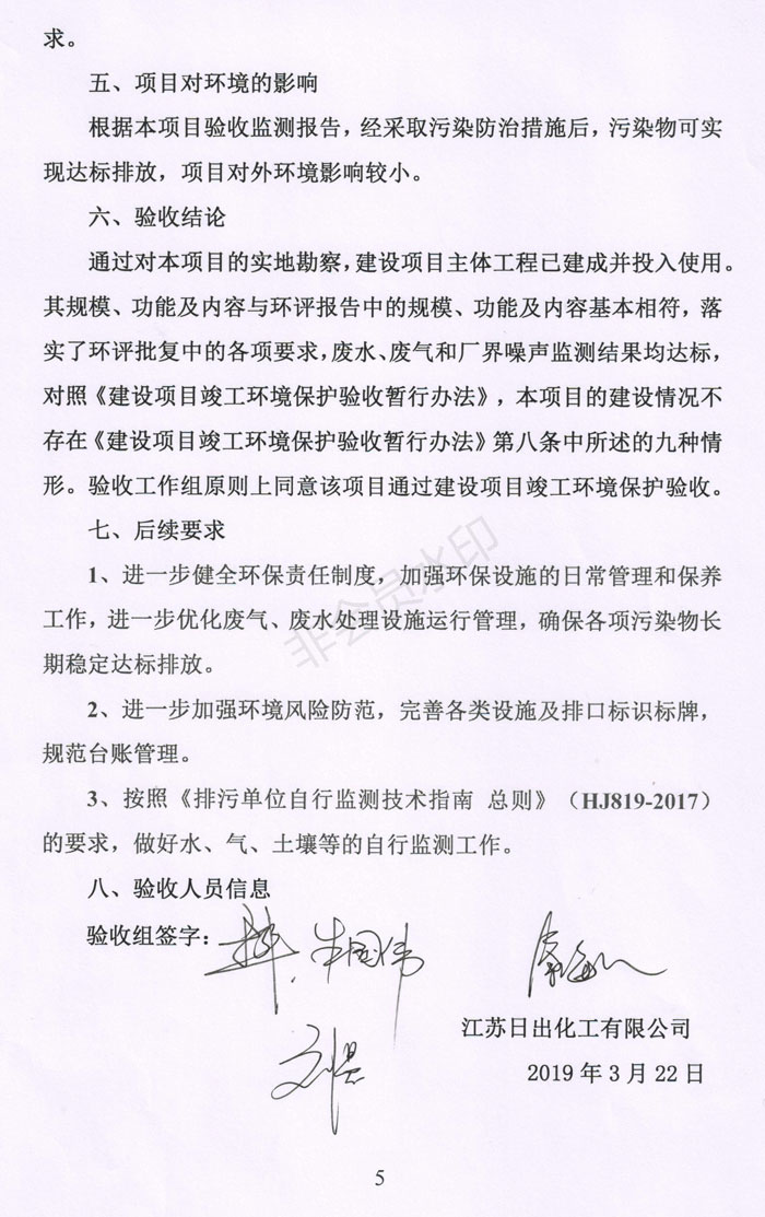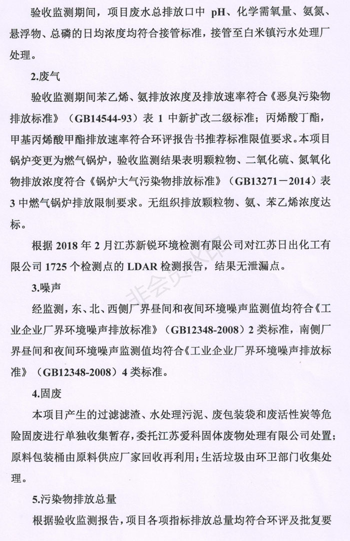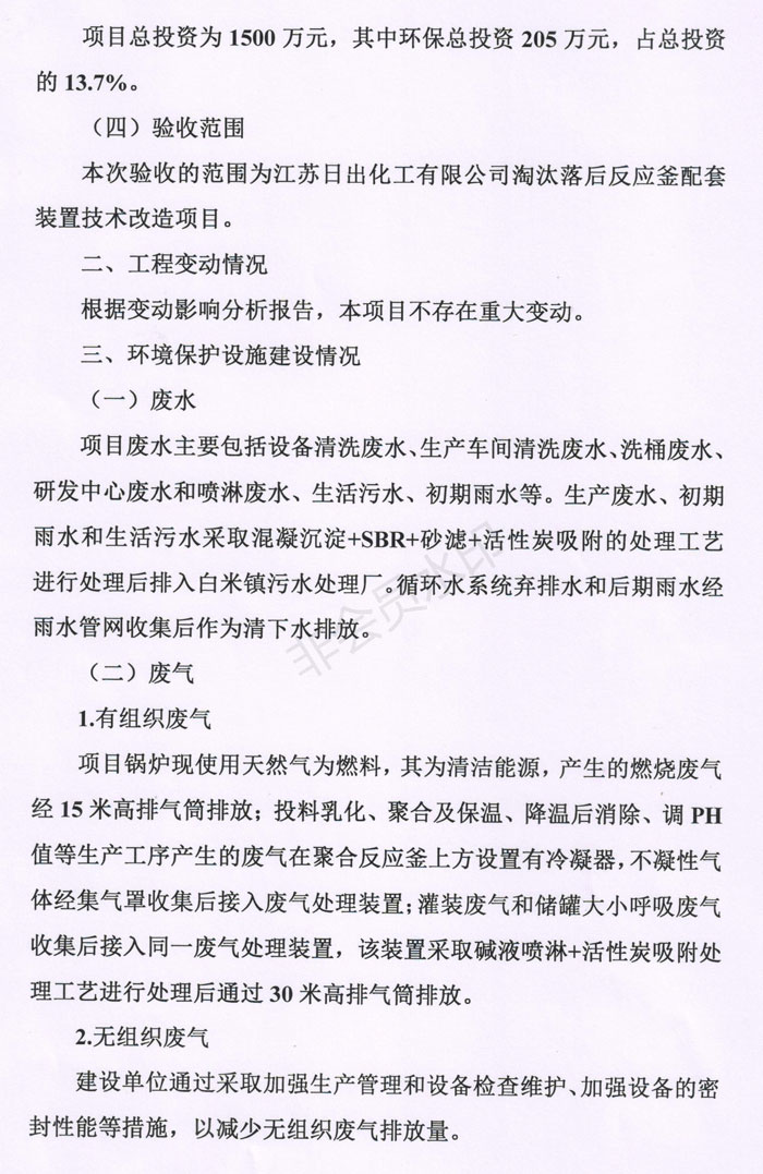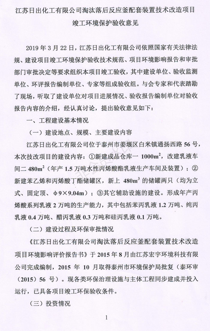 江蘇日出化工有限公司淘汰落后反應釜配套裝置技術改造項目竣工環(huán)境保護驗收意見